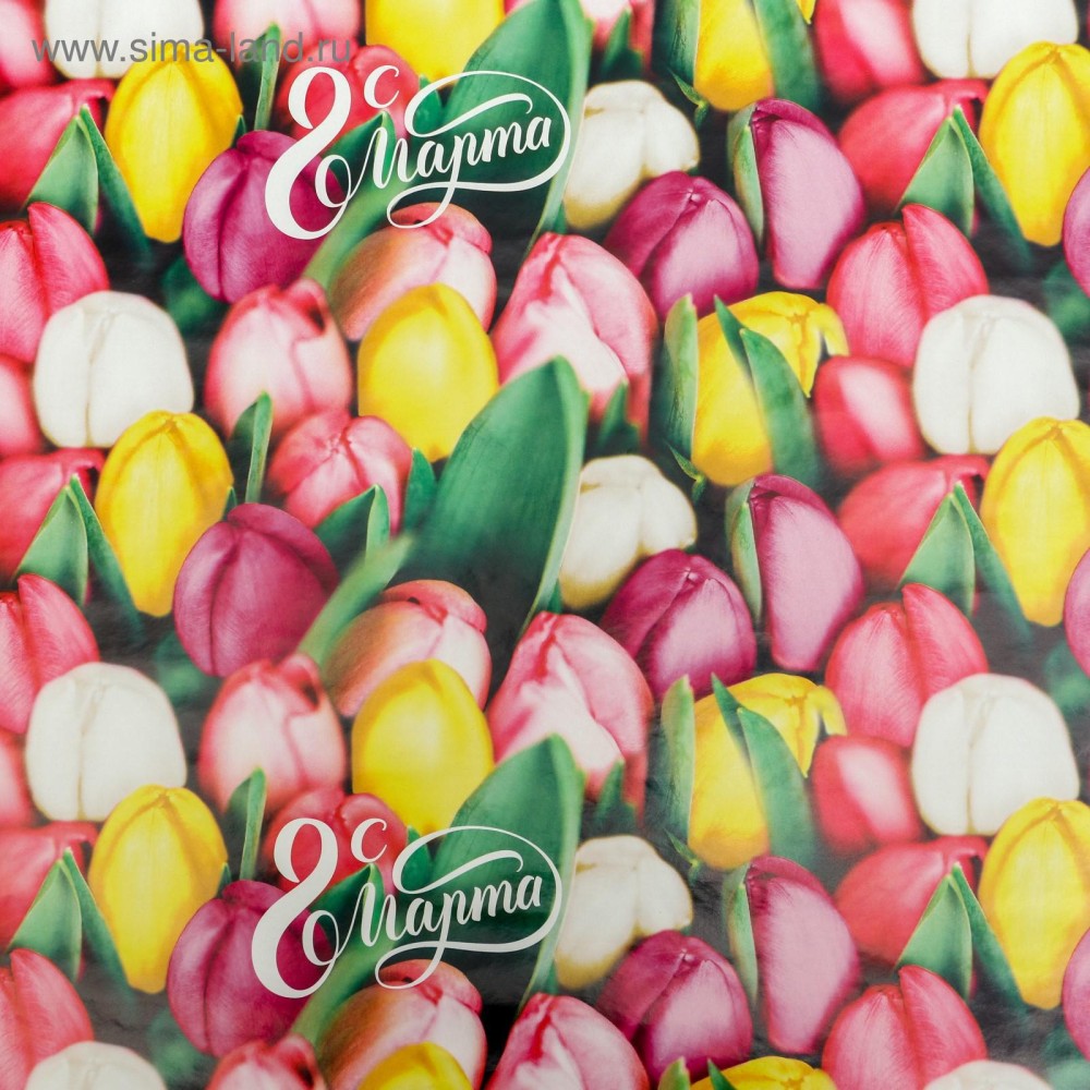 Бумага упаковочная Тюльпаны с 8 марта 70х100см.