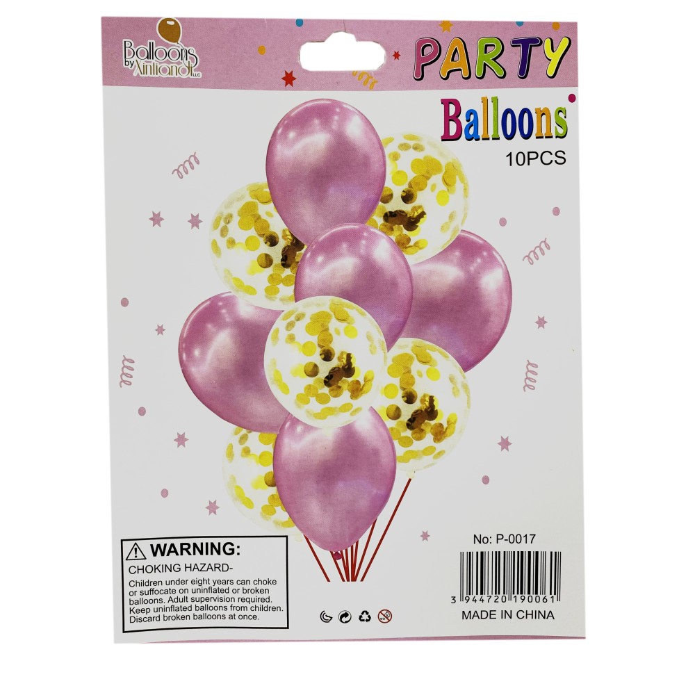 Шарик набор с конфетти золото розовый 10шт.