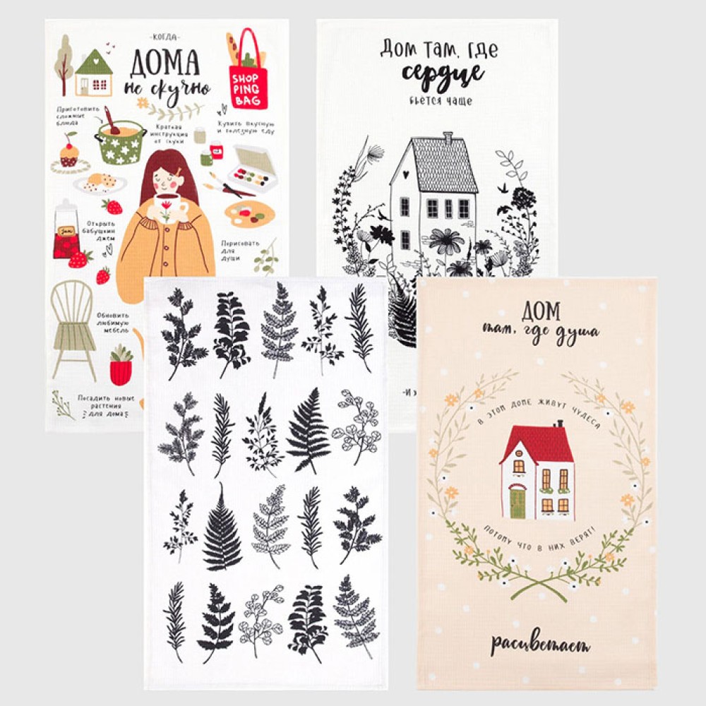 Набор кухонных полотенец Дом там где сердце 35х60см-4шт.